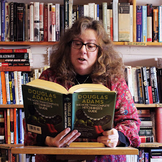 On Towel Day in 2011, Janette Taylor coordinated a world-wide reading of Douglas Adams' The Hitchhiker's Guide to the Galaxy, whereas people in different cities and countries would read the Hitchhiker's Guide publicly. Janette read in Blue Owl Books, in Nederland that day. My daughter and I listened for a few chapters.